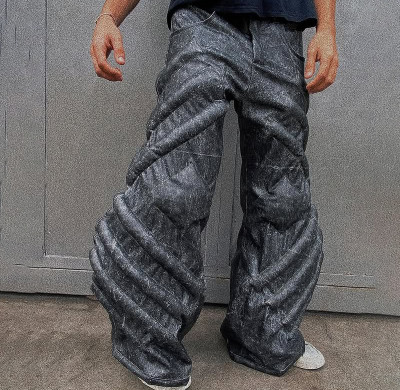 Straight-leg jeans with layered fringe panel design. Ideal for streetwear, Y2K, and boutique fashion collections.