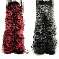 Bold distressed knit fabric jeans with custom outlines, designed for visionary designers creating edgy and unique fashion statements.