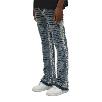 Trendy Distressed Custom Ruffled Denim Jeans, perfect for the modern man. Explore our OEM & ODM solutions and wholesale denim tailoring today!