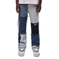 Tailored Men's Denim Jeans - Custom Patchwork & Unique Color Block Design