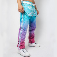- Custom Gradient Stacked Denim Jeans with vibrant tie-dye design. We offer OEM, ODM, and wholesale services for unique styles.