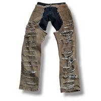 Custom extreme ripped distressed jeans with heavy destruction and grunge style for bold fashion statements