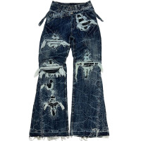 - Custom embroidered stitching jeans with raw distressing and intricate needlework. Designed for high-end fashion brands and boutiques. Low MOQ available.