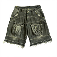 - Custom cargo denim shorts with oversized pockets, distressed details, and a vintage wash—ideal for luxury boutiques.