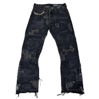 - Custom black denim jeans with punk-inspired distressing, embellishments, and unique metal details—perfect for high-end boutiques and luxury brands.