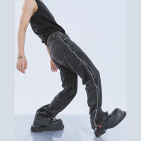 - Custom black denim jeans with bold side zippers, relaxed fit, and premium washed finish—perfect for boutique and high-end designer collections.