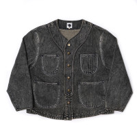 Custom Vintage Washed Denim Work Jacket with Button Closure