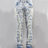 Custom Heavy-Distressed Drawstring Denim Jeans with Embroidered Stitching