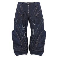 Custom Avant-Garde Distressed Denim Pants with Oversized Pockets