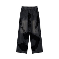 Custom Artistic Hand-Print Washed Wide-Leg Denim