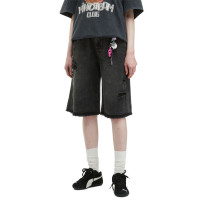 Washed Black Distressed Denim Bermuda Shorts – Y2K Streetwear Unisex Fit