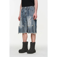 Deconstructed Panel Ripped Denim Shorts – Brutalist Street Design