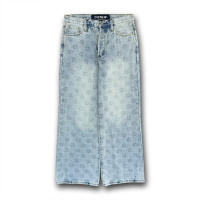 Custom Embossed Floral Wide-Leg Jeans for Boutique & Designer Collections