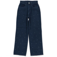 Custom Pearl-Studded Dark Denim Jeans for Premium Boutique Collections