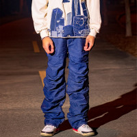 Heavy-stacked jeans in deep indigo with exaggerated layering—built for premium streetwear and boutique drops.