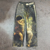Classic art meets contemporary denim—Romantic oil painting print jeans for the bold and cultured wardrobe.