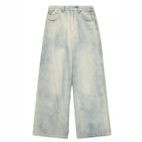 Custom Washed Wide-Leg Jeans with Fade Vintage Finish Wash Denim Pants