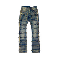 Custom Allover Fringed Panel Straight Jeans for Streetwear Labels